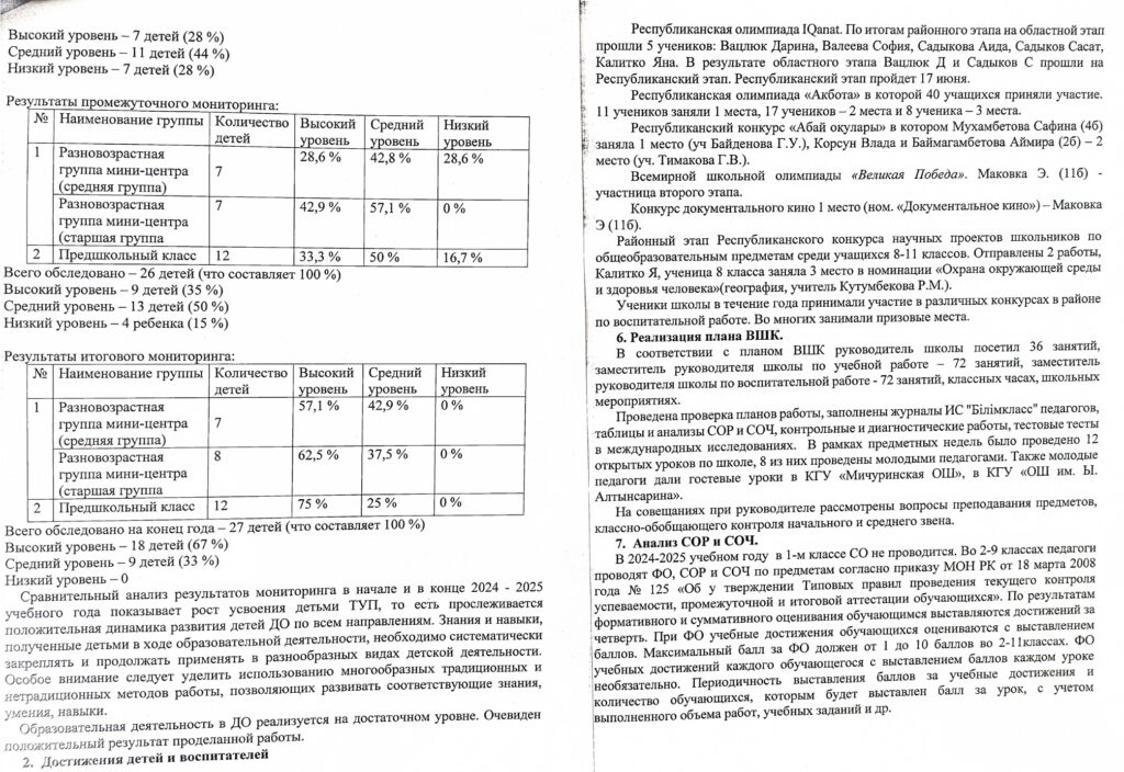 2024-2025 оқу жылында мектептің өзін-өзі бағалауы